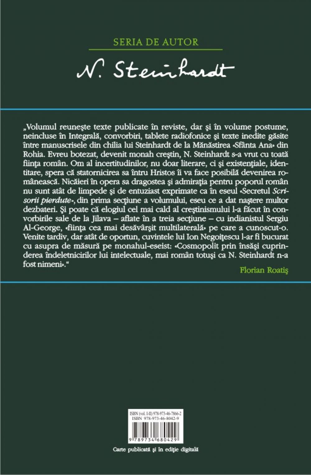 Opera integrala N. Steinhardt este publicata în coeditare cu Manastirea „Sfînta Ana”, Rohia
