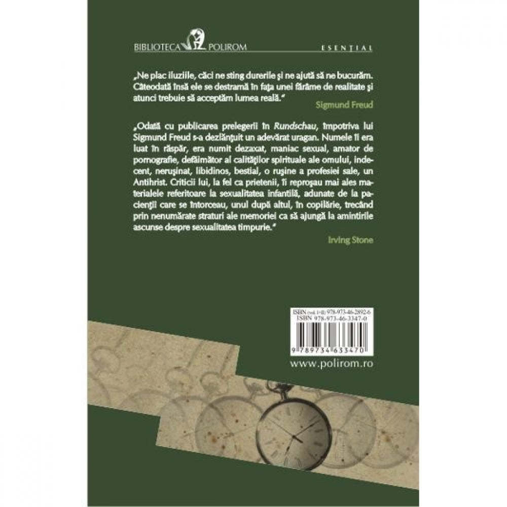 „Odata cu publicarea prelegerii in Rundschau, impotriva lui Sigmund Freud s-a dezlantuit un adevarat uragan. Numele ii era luat in raspar, era numit dezaxat, maniac sexual, amator de pornografie, defaimator al calitatilor spirituale ale omului, indecent, nerusinat, libidinos, bestial, o rusine a profesiei sale, un Antihrist. Criticii lui, la fel ca prietenii, ii reprosau mai ales materialele referitoare la sexualitatea infantila, adunate de la pacientii care se intorceau, unul dupa altul, in copilarie, trecind prin nenumarate straturi ale memoriei ca sa ajunga la amintirile ascunse despre sexualitatea timpurie.” (Irving Stone)