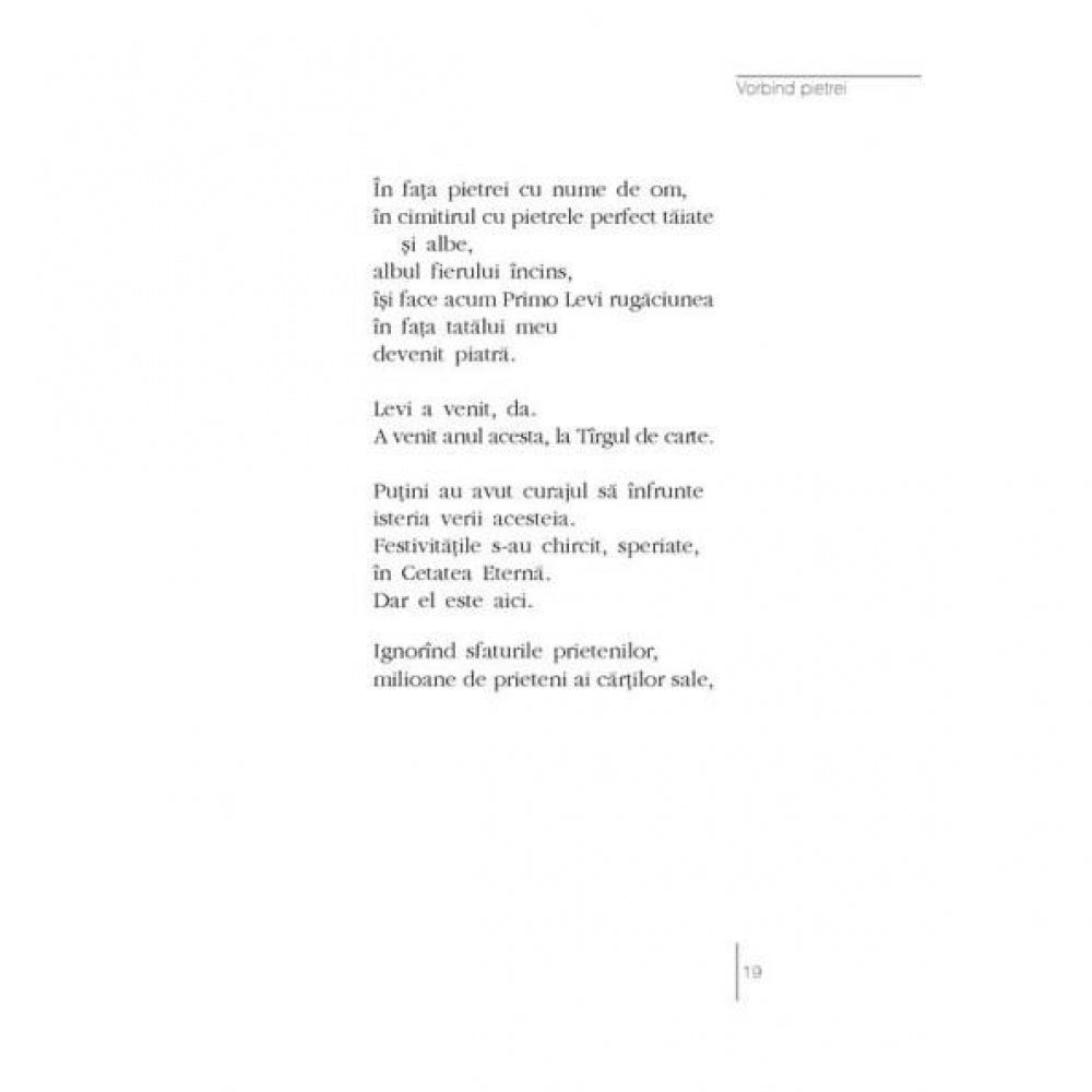 „Promisesem gazdelor sa scriu un text despre aceasta calatorie, sau despre Tirg, sau despre Israel. Am stat in fata dreptunghiului alb si amenintator al hirtiei, pina cind am inceput sa scriu un soi de «adresare» cvasi-poetica umbrei tatalui meu si umbrei lui Primo Levi, bizar reuniti, dintr-odata, intr-o neasteptata articulare retorica.” - Norman Manea