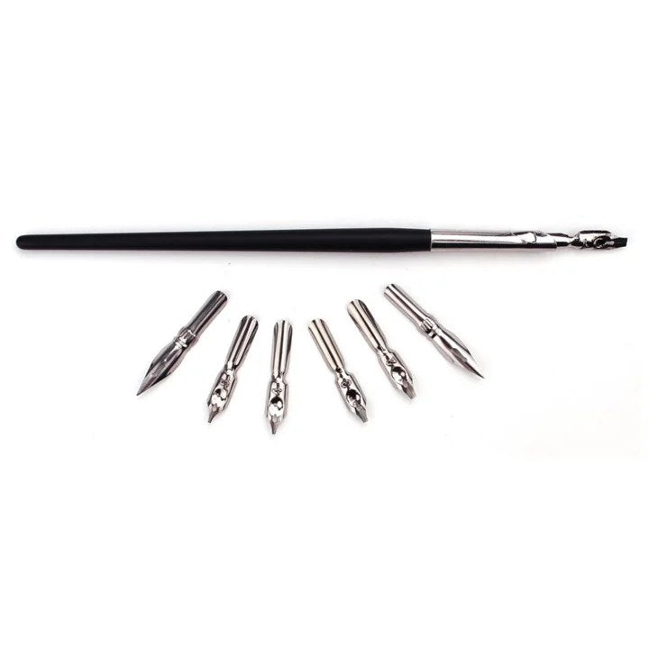 Setul minunat cu accesorii caligrafice de la marca Nassau Fine Art conține tot de ce aveți nevoie pentru caligrafie - un stilou de caligrafie, 7 capete înlocuibile și cerneală neagră. Acest cadou din 9 piese este potrivit nu numai pentru toate tehnicile de caligrafie, ci este, de asemenea, o sărbătoare pentru ochi. Este un cadou ideal pentru oricine dorește fonturi decorative, scrisori de dragoste sau cărți poștale din străinătate. Setul oferă impresia de lux și simplitate într-una.
