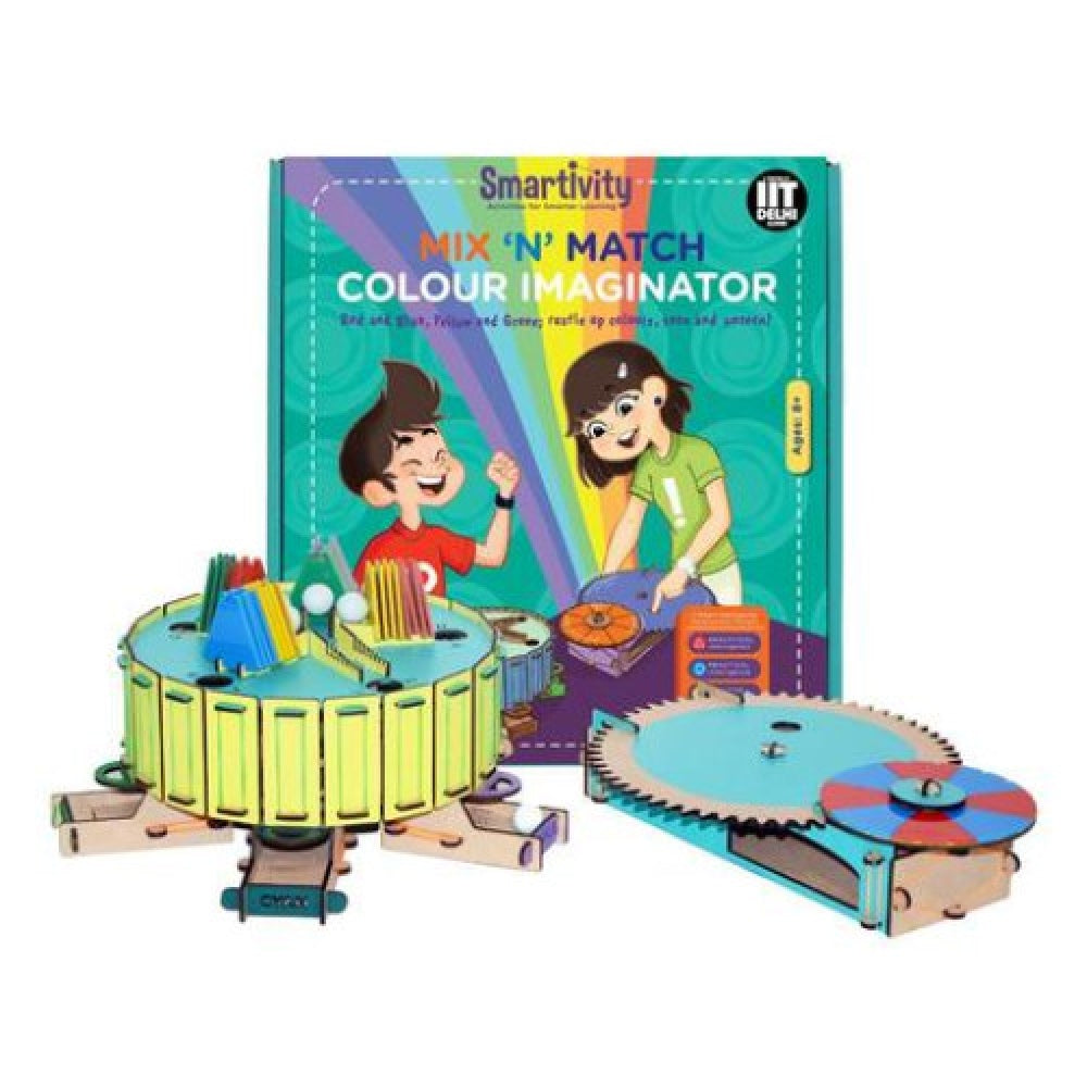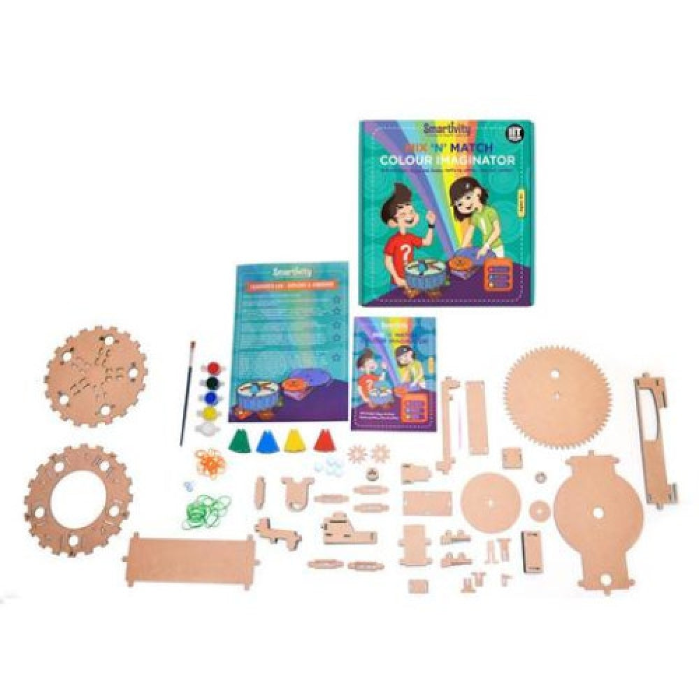 Cu acest kit, copiii invata despre culori si despre mecanisme prin construirea proiectului de doua parti. Imaginatorul de culori este format din sectoare colorate si doua unitati mecanice. Pneul de amestecare a culorilor, atunci cand se roteste cu sectoare colorate primar montate pe ea, duce la generarea de culori secundare.