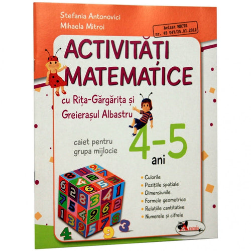 Activitati matematice cu Rita Gargarita si Greierasul Albastru - (caiet) grupa mijlocie 4-5 ani - Mihaela Mitroi, Stefania Antonovici