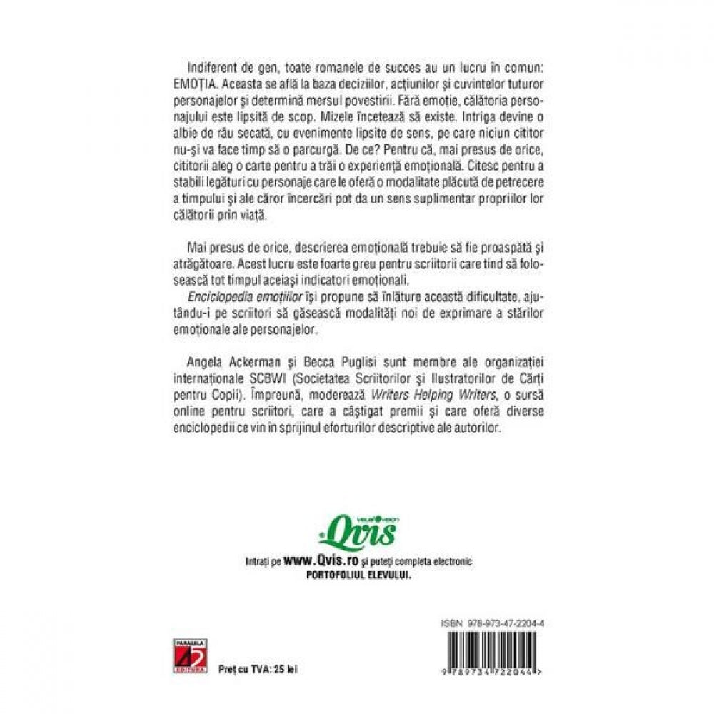 Enciclopedia emotiilor isi propune sa inlature aceasta dificultate, ajutandu-i pe scriitori sa gaseasca modalitati noi de exprimare a starilor emotionale ale personajelor.