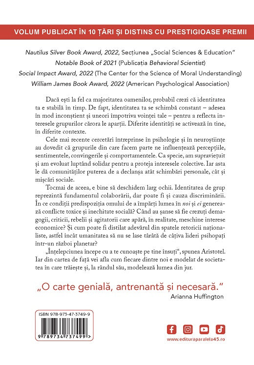 Tocmai de aceea, e bine să deschidem larg ochii. Identitatea de grup reprezintă fundamentul colaborării, dar poate fi și cauza discriminării. În ce condiții predispoziția omului de a împărți lumea în noi și ei generează conflicte toxice și inechitate socială? Când au șanse să fie crezuți demagogii, criticii, rebelii și agitatorii care apără, în realitate, meschine interese economice? Și cum poate fi distilat adevărul din spatele retoricii naționaliste, astfel încât umanitatea să nu se lase târâtă de câțiva lideri psihopați într-un război planetar?