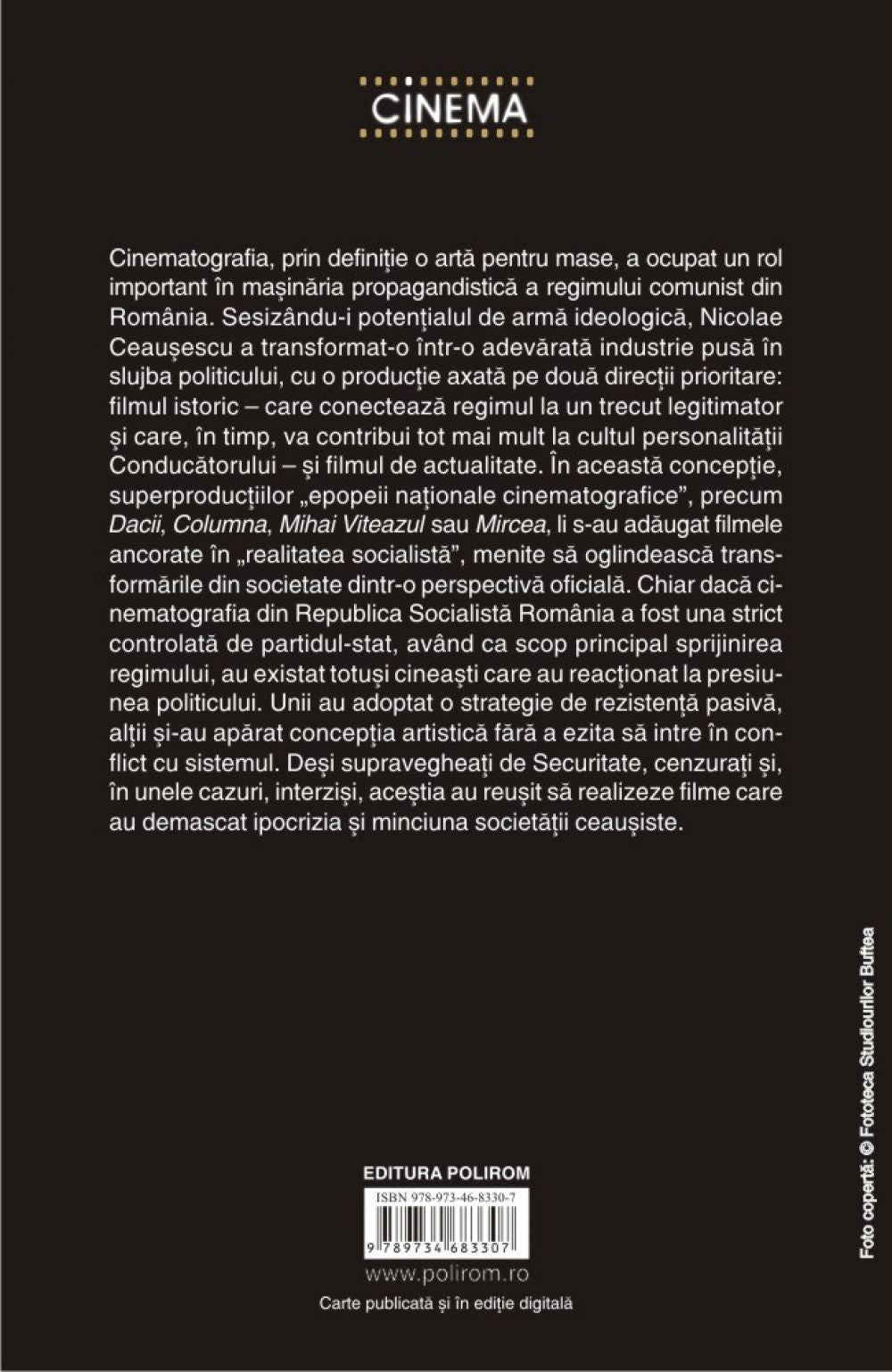 Cinematografia, prin definitie o arta pentru mase, a ocupat un rol important in masinaria propagandistica a regimului comunist din Romania. Sesizindu-i potentialul de arma ideologica, Nicolae Ceausescu a transformat-o intr-o adevarata industrie pusa in slujba politicului, cu o productie axata pe doua directii prioritare: filmul istoric – care conecteaza regimul la un trecut legitimator si care, in timp, va contribui tot mai mult la cultul personalitatii Conducatorului – si filmul de actualitate. In aceasta conceptie, superproductiilor „epopeii nationale cinematografice”, precum Dacii, Columna, Mihai Viteazul sau Mircea, li s-au adaugat filmele ancorate in „realitatea socialista”, menite sa oglindeasca transformarile din societate dintr-o perspectiva oficiala. Chiar daca cinematografia din Republica Socialista Romania a fost una strict controlata de partidul-stat, avind ca scop principal sprijinirea regimului, au existat totusi cineasti care au reactionat la presiunea politicului. Unii au adoptat o strategie de rezistenta pasiva, altii si-au aparat conceptia artistica fara a ezita sa intre in conflict cu sistemul. Desi supravegheati de Securitate, cenzurati si, in unele cazuri, interzisi, acestia au reusit sa realizeze filme care au demascat ipocrizia si minciuna societatii ceausiste.