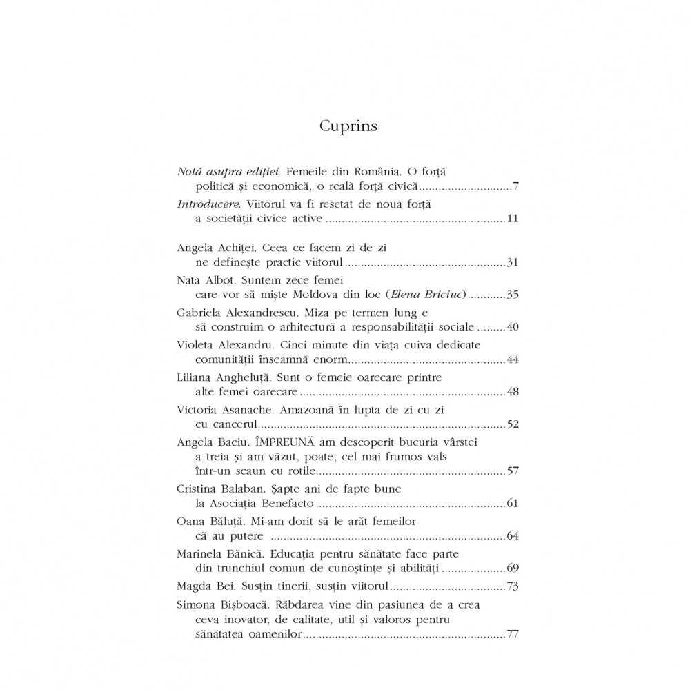 In aceasta a treia carte dedicata femeilor contemporane din Romania, Andreea Paul s-a lasat inspirata de „realitatile romanesti emotionante care au transformat raul in bine si greul in usor prin implicare civica” si a reusit sa adune povestile a nu mai putin de 100 de coautoare. Volumul isi concentreaza atentia asupra unei constiinte feminine treze, care nu da niciodata vina pe soarta, saracie sau guvern, ci cauta sa genereze schimbarea pornind din interior si construind treptat o lume mai buna.